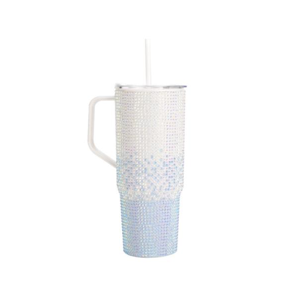 Cross Border 1200ml Single-Wall Tumbler With Shiny Diamonds Handle And Straw Images |